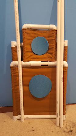 Example of PVC and Fabric, with foam Face and Heart. Breaks down at the waist with smaller pipes inside to hold it together.