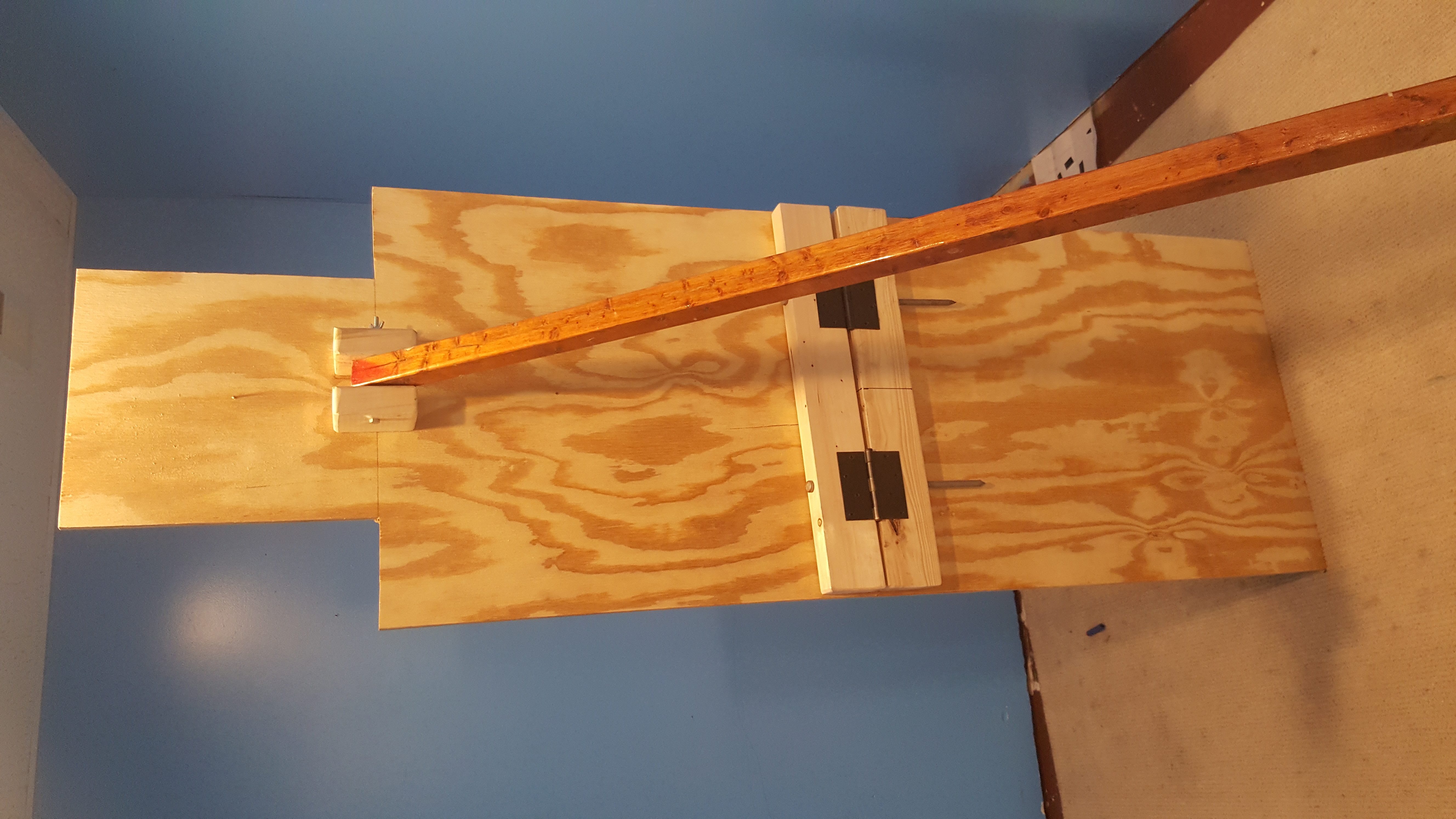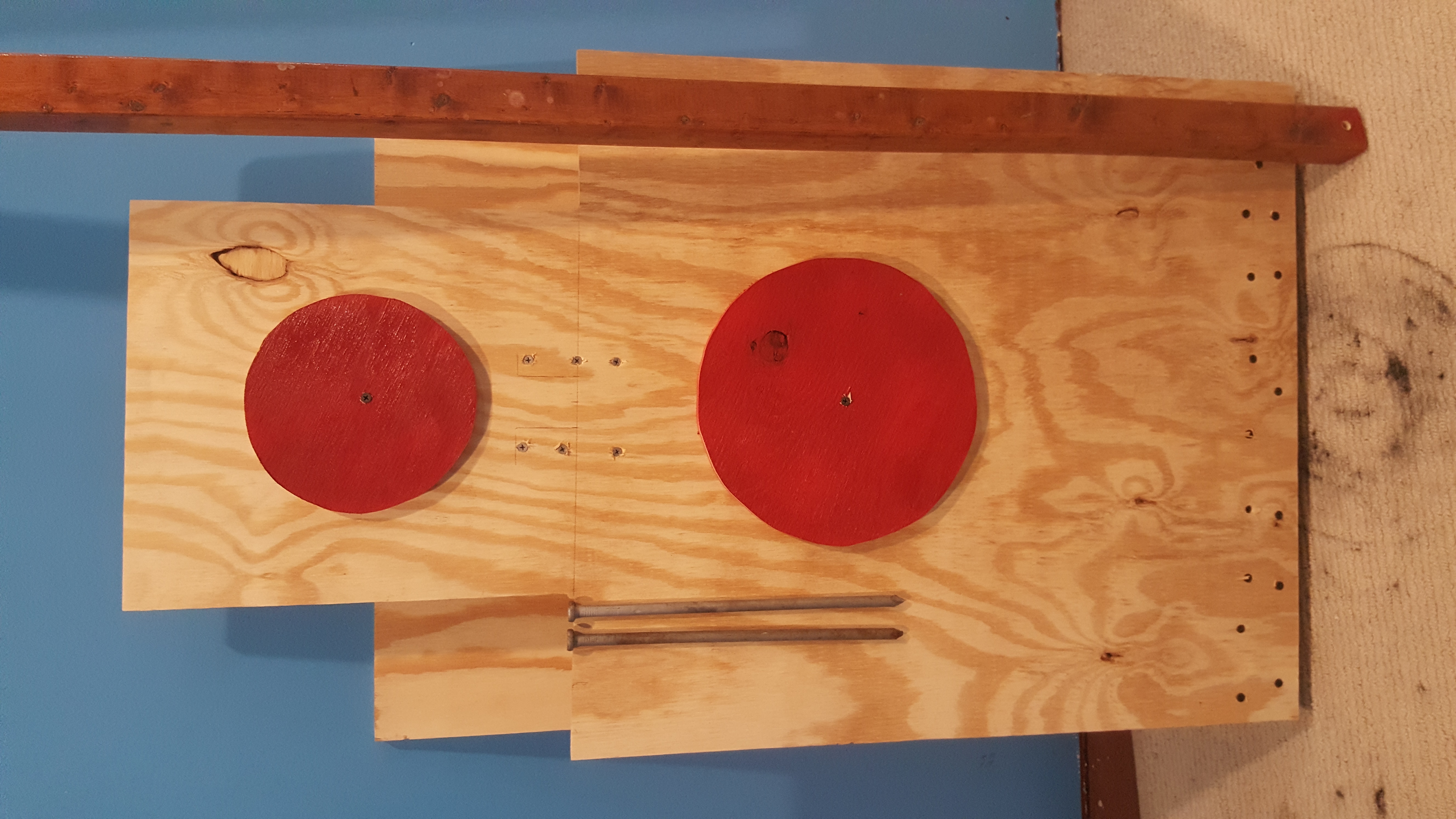 Example of Plywood folding. Folds at the waist with landscaping nails through the hinge board to keep it from folding when in use. Face and Heart are secondary plywood circles.