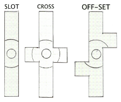 In each of the slots is an 8-inch diameter circle centered at the middle of the 24 inch-slot. Part of it is included in each of the two arms of the cross arm and off-set slots. Within this circle is centered a 3-inch circle. The 8-inch circle does not extend outside of the slots or arms. The 8-inch circle may contrast with the slot, but the 3-inch circle is the same color as the 8-inch and is only outlined. The slots may be either drawn on a larger surface or may be cut out to shape and mounted on their backstop. In the case of a cut-out, the target should contrast with the backstop. You may either use the plain circles or you may draw a face within the 8-inch circle and within the slot as well. If a face is used, the scoring circles must be plainly visible up close for scoring. If drawn upon a larger surface, the area outside of the slots may be made to resemble the stones of a castle wall.